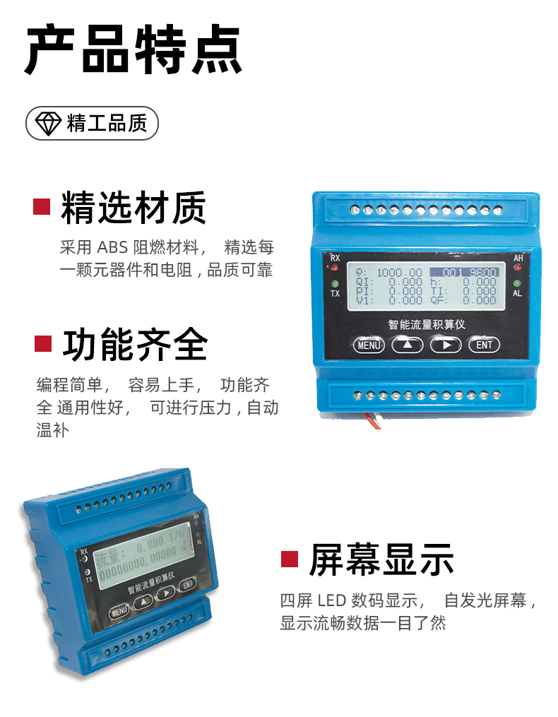 导轨型智能流量积算仪 带温压补偿