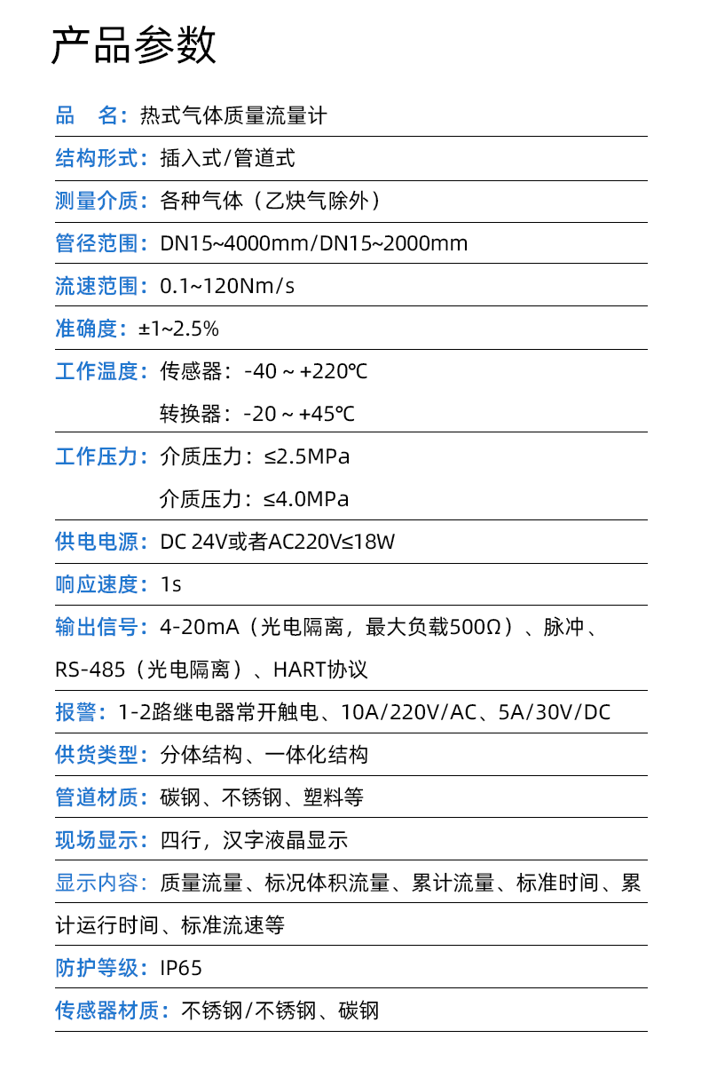 热式气体质量流量计 天然气 高炉煤气等